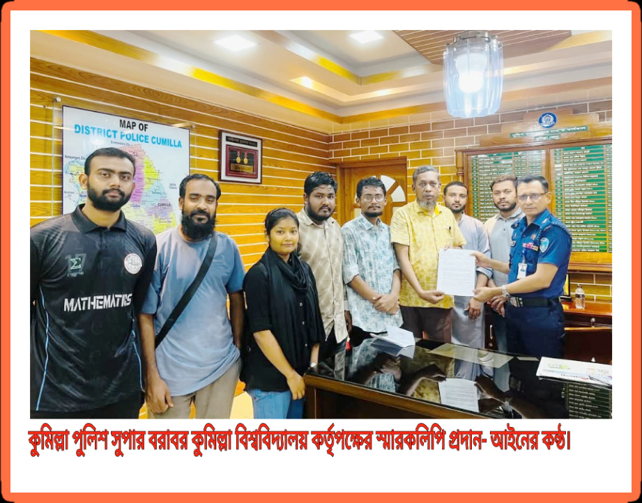কিশোর গ্যাং ও মাদকমুক্ত কুমিল্লা মহানগরীর দাবিতে, কুমিল্লা বিশ্ববিদ্যালয়ের পক্ষ থেকে কুমিল্লা পুলিশ সুপার বরাবর স্মারকলিপি প্রদান।