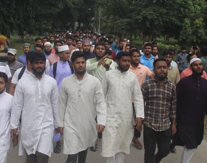 এসময় মিছিলে ‘নারায়ে তাকবির, আল্লাহু আকবার; ইসলামী ছাত্রশিবির, জিন্দাবাদ জিন্দাবাদ; আওয়ামীলীগের ঠিকানা, এই ক্যাম্পাসে হবে না; মাহবুবের ঠিকানা এই ক্যাম্পাসে হবে না; মাহবুব জঙ্গি, হাসিনার সঙ্গী; প্রক্টর মাহবুবের কালো হাত, ভেঙ্গে দাও গুড়িয়ে দাও; মাহবুবের বহিষ্কার, করতে হবে করতে হবে’ ইত্যাদি স্লোগান দেন শিক্ষার্থীরা।