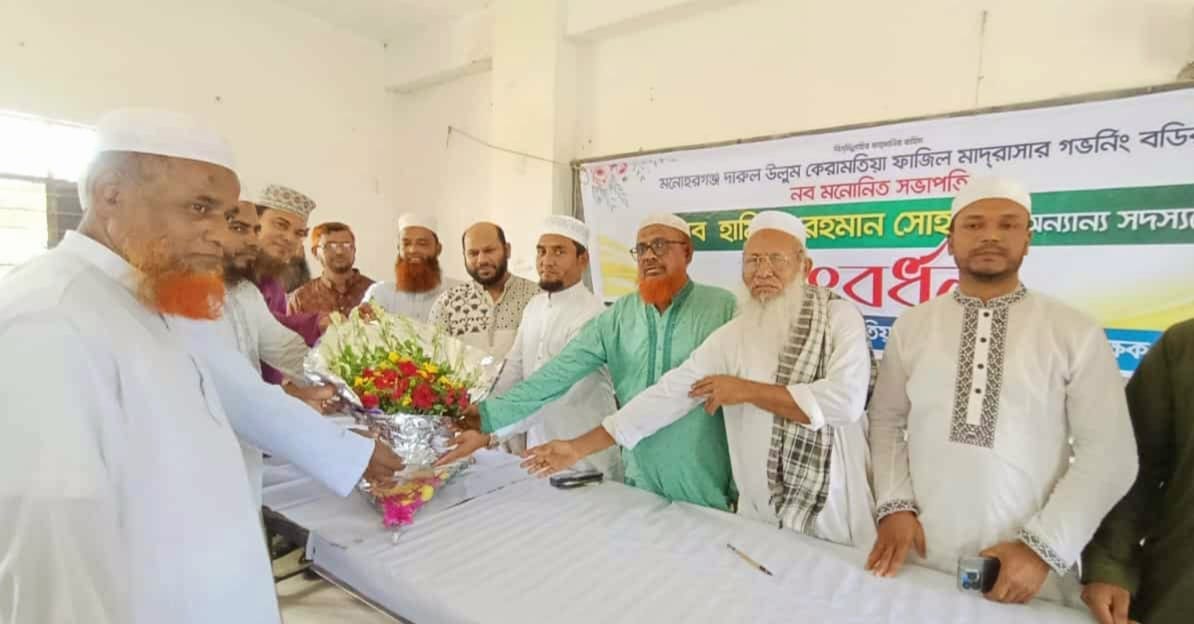 মনোহরগঞ্জের ঐতিহ্যবাহী শিক্ষা প্রতিষ্ঠান "দারুল-উলুম কেরামতিয়া ফাজিল মাদ্রাসার" নবনির্বাচিত গভর্নিং বডির সভাপতি ও সদস্যদের সংবর্ধনা প্রদান করা হয়েছে। সোমবার সকালে মাদ্রাসার হলরুমে এ সংবর্ধনা অনুষ্ঠান অনুষ্ঠিত হয়।