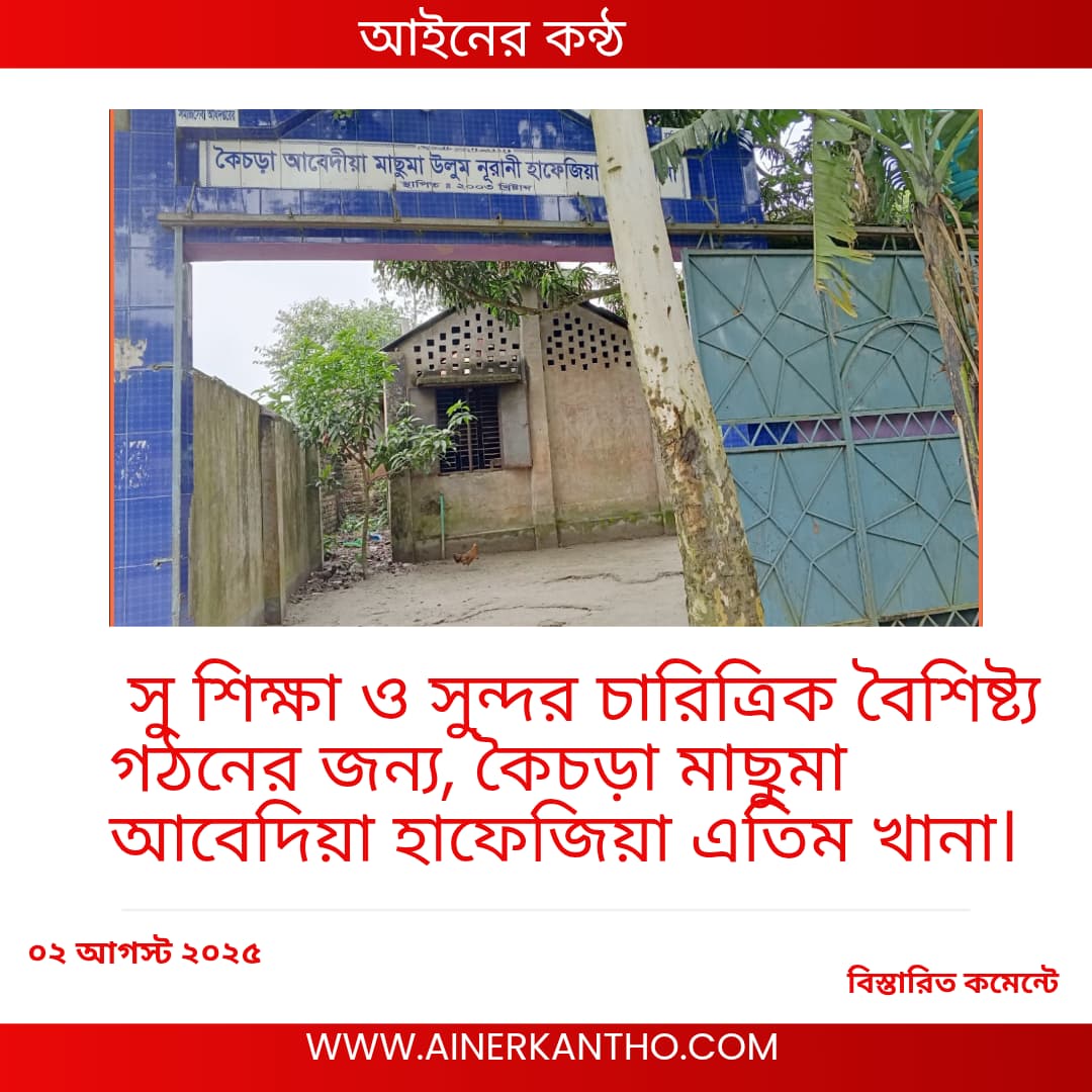 আপনার সন্তান কে একজন হাফেজ ও আলেম শিক্ষা দেওয়ার জন্য আজই আপনার সন্তান কে ভর্তির জন্য পাঠিয়ে দিন।অভিজ্ঞ শিক্ষক মন্ডলীরা প্রতিষ্ঠানটি পরিচালিত। তাই আপনার সন্তানকে সুশিক্ষা এবং একজন হাফেজ ও আলেম বানানোর জন্য কৈচড়া আবেদীয়া মাসুমা হাফিজিয়া এতিমখানায় শিক্ষার জন্য পাঠিয়ে দিন।