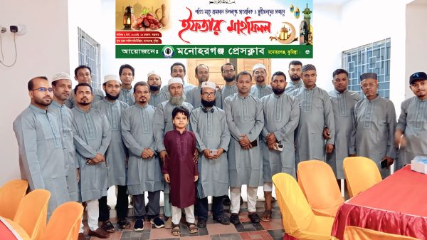 এস এম আনোয়ার মনোহরগঞ্জ (কুমিল্লা) প্রতিনিধি। কুমিল্লার মনোহরগঞ্জে কর্মরত সকল ইলেকট্রিক ও প্রিন্ট মিডিয়ার সাংবাদিক ও সুধীজনদের সম্মানে দোয়া ও ইফতার মাহফিলের আয়োজন করেছে মনোহরগঞ্জ প্রেসক্লাব। শুক্রবার (৬ মার্চ)