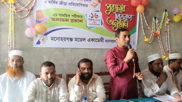 মনোহরগঞ্জ মডেল একাডেমিতে বৃত্তিপ্রাপ্ত শিক্ষার্থীদের সংবর্ধনা ও পুরস্কার বিতরণ অনুষ্ঠান